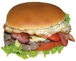 Pao, hamburguer de ponta de peito, alface, tomate, presunto e mussarela.