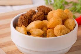 5 unidades de coxinha cremosa,5 unidades de bolinha de queijo e 5 risoles de carne