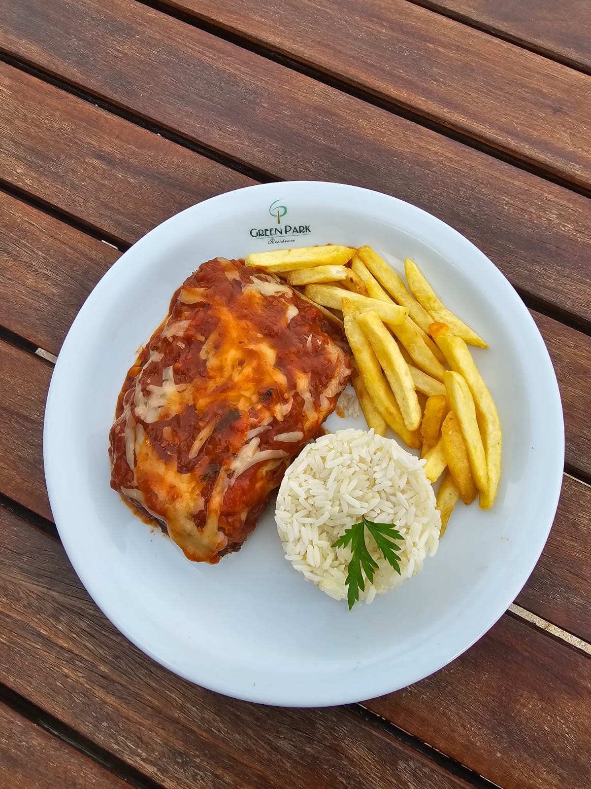 Acompanha: Arroz, Batata Frita e Salada Verde