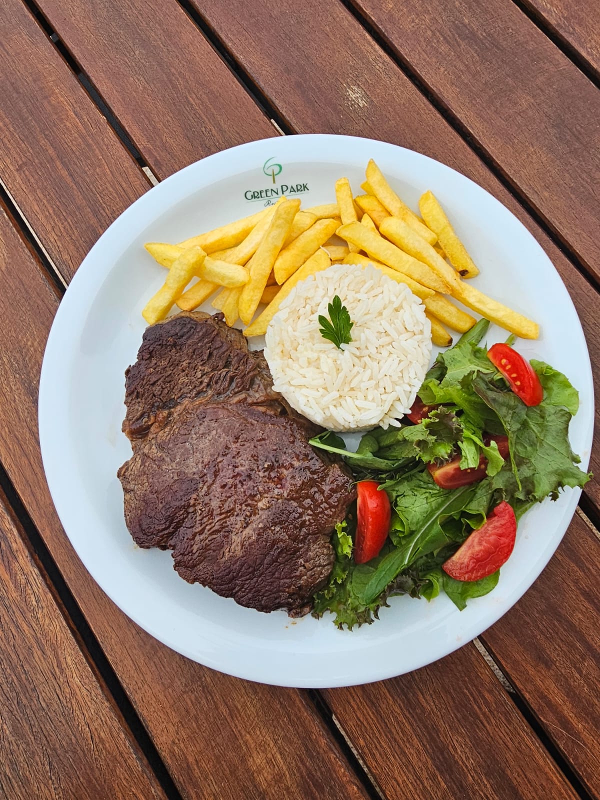 Bife Ancho com Arroz , Batata Frita e Salada Verde